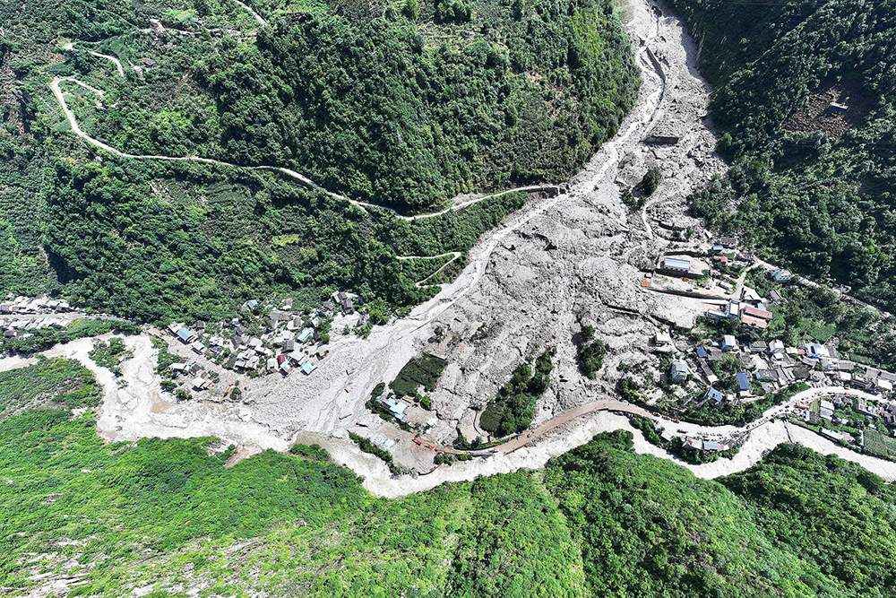 此次山洪泥石流坡度陡、来势猛,灾害发生地日地村日地沟最高点位于笔架山海拔5752米,最低处海拔1702米,高差达4050米。山洪泥石流灾害形成区为无人区,灾害发生地沟口监测小时降水18.4毫米。据报道,经专家研判,四川甘孜康定“8·03”特大山洪泥石流灾害是由持续降雨叠加冰雪融化引发的。