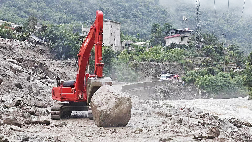 倪天才记得8月3日白天,开始有救援队来村子里进行救援,村民们转为做协助工作。倪天才介绍说,现在救援已经进行地差不多了,主要工作是抢修国道,他正在帮忙恢复村里用水。倪天才形容,现在村里的泥石流部分凝固,部分还是糊状泥浆,夹杂着大量山石。“泥石流的救援不太好进行,(受灾)面积太大了。”
