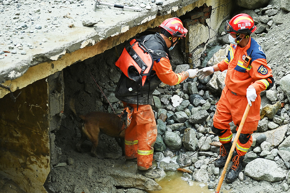 “从家里出来的时候只有一两分钟的反应时间,(泥石流)快得很。”倪天才回忆说,当时无法看清远处的泥石流,但在目光所及之处,可见“泥石流和山石相撞产生火花”。村民们都打着伞聚集在村子里地势比较高的国道上,互相确认是否还有村民被困。倪天才说,雨一直下到天亮,天亮后,村民们就回到村子里面寻找被困人员,他也参与到其中。“我看到有人从泥石流里面爬出来。村民们把受伤的人送到通车的地方,那里有救护车在等待。”