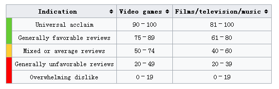 Metacritic成立于1999年,最早从书评起家, 如今已覆盖了音乐专辑、电影、电视剧、电子游戏等领域。在这里,绿色代表推荐、黄色代表中立、红色代表反对。虽说Metacritic要求专业影评人都要给一个准确的分数,然而并不是人人都这么听话。事实上,Metacritic 是这样做的:影评人给分数就用分数;给星数就折算成百分制的分数;如果只给了文字版影评却并未打分,Metacritic就自己找人去阅读影评,然后根据读完的感受给出一个分数。但要注意的是,这里说的分数还不是最终电影的分数,这只是最终分数的来源数据。