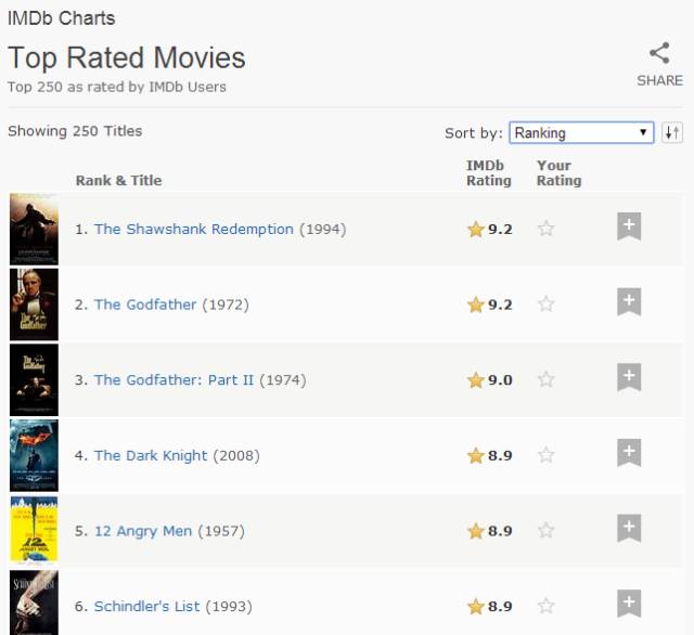 除了日常的电影评分,IMDb还推出了实时更新的Top 250电影榜单,一经推出便成了广大群众寻找优质电影的最好去处。然而这个榜单是如何形成的呢?