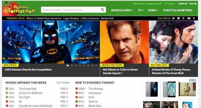 比起上文提到的两个影评网站,想必烂番茄在国内的知名度更高。它成立于1998年,起初是身为成龙迷的创始人用来收集成龙电影在美评价的平台,而“烂番茄”这个名字的来源是轻歌舞剧时期观众在演出不佳时会往舞台上扔掷番茄和其他蔬果 。如今,烂番茄可谓是影评界的不老松,就连iTunes Store和Google Play上的电影也会加以烂番茄的评价信息,以便民众参考。