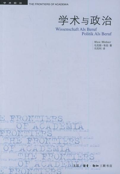 除了哈耶克,冯克利在那段时间最为投入翻译的还有一本他个人认为极为重要的作品《学术与政治》,其作者是德国社会学一代宗师马克斯·韦伯。早在1980年代,冯克利便在社科院的图书室看到了这本书的台湾版,被收录在钱永祥主编的一套韦伯文集中。冯克利第一次读到《学术与政治》——尤其是其中的名篇《以政治为业》、《以学术为业》时——就被深深感染。