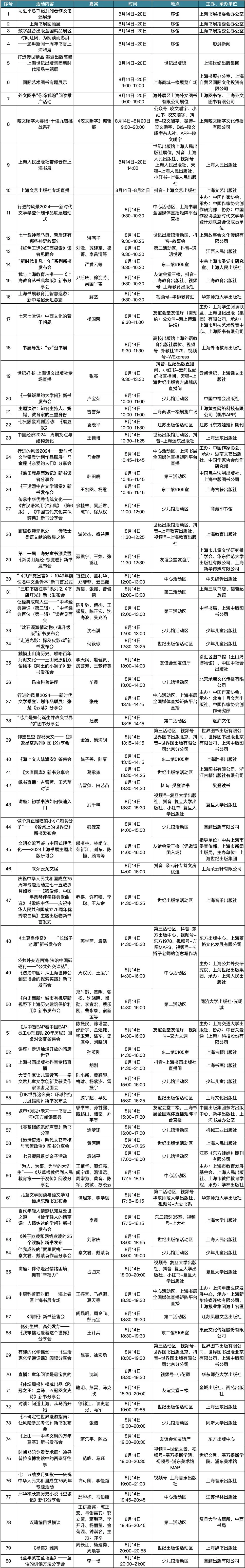 2024上海书展将于8月14日开幕。在今日举办的2024上海书展新闻通气会上,公布了本届书展的一些亮点。