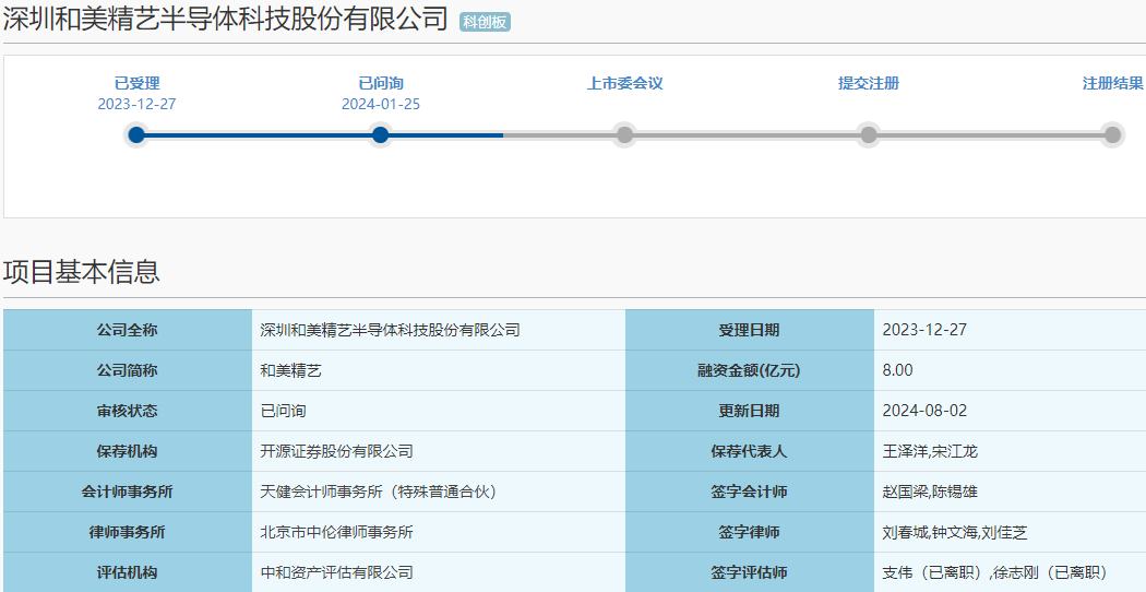 自1月25日进入问询状态,正在冲刺科创板IPO的深圳和美精艺半导体科技股份有限公司(简称“和美精艺”)于8月2日披露收一轮审核问询回复函。该公司的产品技术先进性、主要客户、与佰维存储的关联交易、毛利率等情况遭上交所追问。
