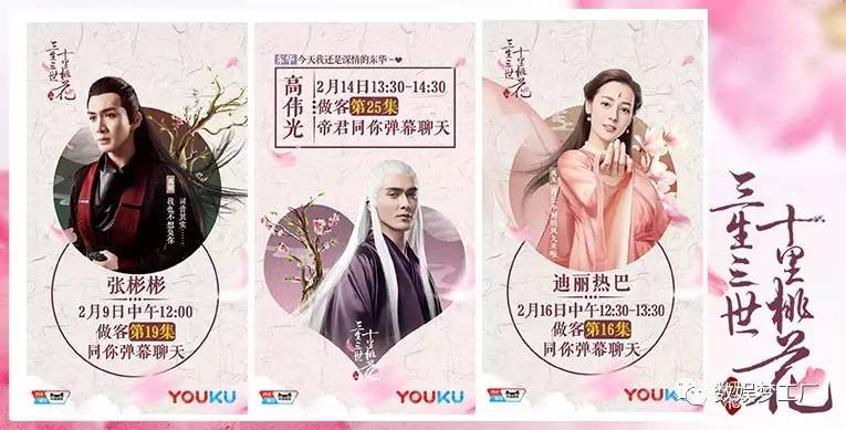 然而,不论是爆款加速器还是文化衍生品产业链的整合者,以此对优酷进行身份定位都略显单薄。不妨让我们延续此次“桃花期”活动所打造的场景近一步观察——“在优酷的直播频道,迪丽热巴、高伟光、张彬彬等主演在线上与粉丝一起弹幕聊天,撩的粉丝们不要不要的。广告主们也一并入了这场桃花局,味全上线“三生三世,只为你等”的桃花主题瓶、泸州老窖的“桃花醉”在剧外营造氛围,360、豆果美食实现了开屏现桃花。包括十点读书在内的数十知名KOL也加入了这场集体安利之中,各行业各场景之间实现了无缝跨界联动。”