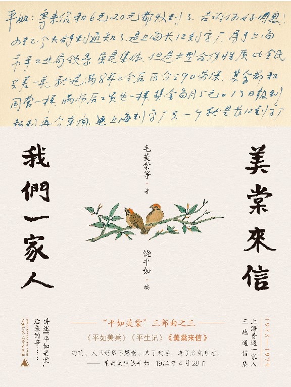 本书则收录了饶平如收到的来自妻子美棠和孩子的71封家书,那时,饶平如下放安徽,毛美棠留在上海照顾家庭,不久,家中年长的孩子们也去江西下乡。分散在各地的家庭成员,连接他们亲情的,是一封封往来两地的家书。他们互相汇报生活近况,通报生活上遇到的困难,给对方出谋划策,家书支撑他们度过了三地分散的艰难时期,也是那个年代一个普通中国家庭生活的侧写。