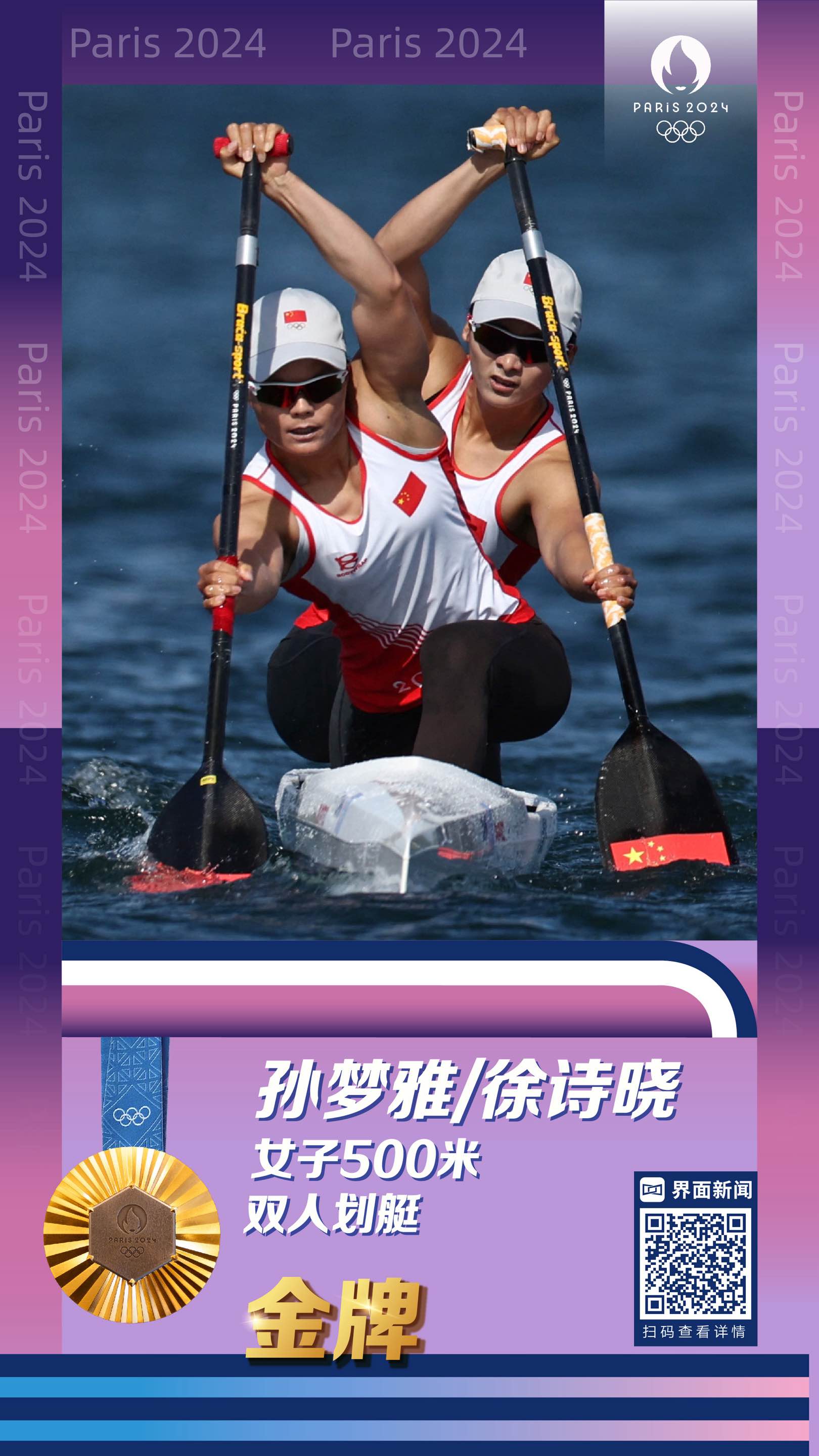 中国组合徐诗晓/孙梦雅夺得女子500米双人划艇金牌