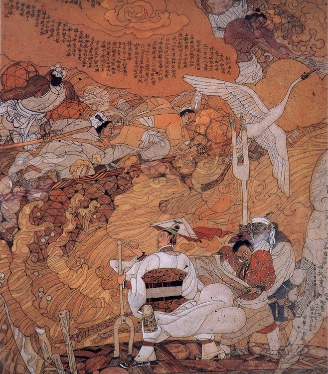 《大濩》,商代著名的乐舞,汤灭夏,天下安宁,命伊尹作《大濩》,乐舞表演时场面壮观、气势宏大,集商超月舞之大成。“濩”本来是指用乐舞形式祭祀先祖的祭典活动,后来这类祭典活动中表演的音乐舞蹈专称“濩乐”,比如周代就用以祭祀始祖姜嫄或泛祭先妣。