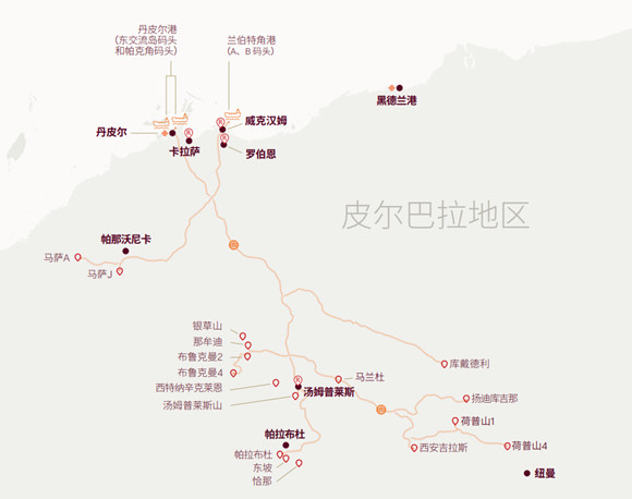 力拓在皮尔巴拉地区经营铁矿项目已超过50年,在当地运营着庞大的铁矿开发资产:17座铁矿矿山(不包括西坡铁矿)、430辆卡车组成的车队、里程数长达1900公里的全球最大私营重载铁路系统,以及4个港口码头。