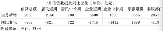 Wind数据显示,7月社融口径下人民币贷款增量为-767亿元。
