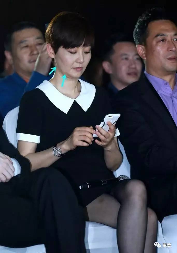 但细看会发现,两腮的部位松弛情况反而更好一些,这就得益于她的高颧骨