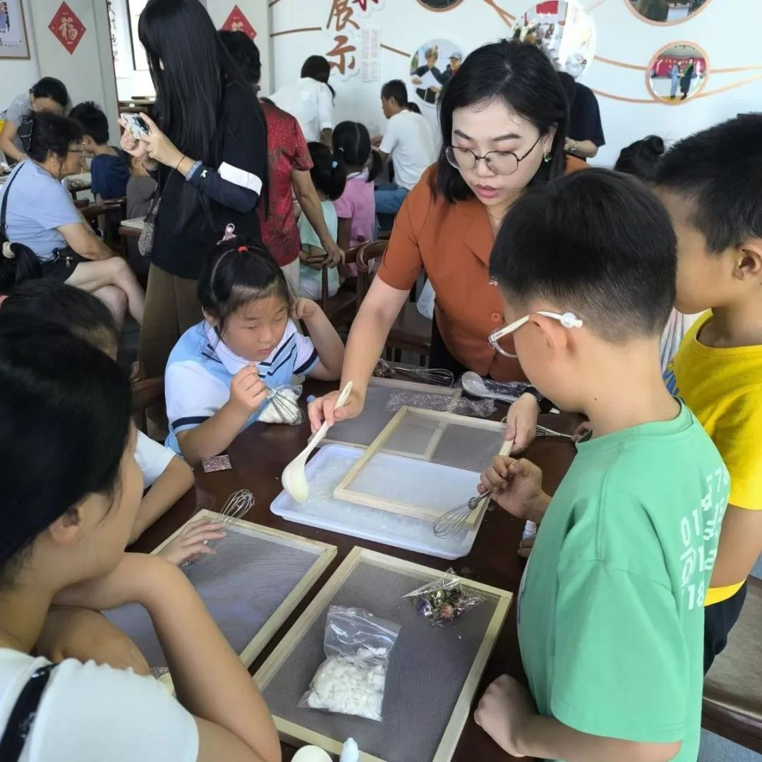 活动中,孩子们与家长携手,亲身体验造纸全过程,从原料准备到成品展示,每一步都充满探索的乐趣。亲子合作不仅加深了父母和孩子的情感交流,更让孩子们直观感受到古代智慧的魅力,激发了他们对传统文化的兴趣与热爱。