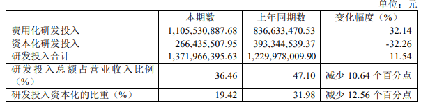上半年,海光信息研发投入资本化比例进一步下降,从去年同期的31.98%下降至 19.42%,同时公司费用化研发投入同比增长32.14%。公司业绩含金量进一步提升。主要原因系在研项目中,新一代海光协处理器产品工程技术等资本化项目验收结项;围绕海光处理器关键技术研发、新一代海光通用处理器芯片设计等费用化项目的研发进度加快,投入增加较多。