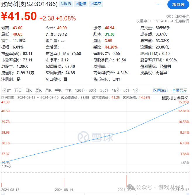 而致尚科技作为八位堂的重要供应商,后者与《黑神话:悟空》合作推出的联名手柄在市场上取得了巨大成功,致尚科技的股价也因此连续上涨。