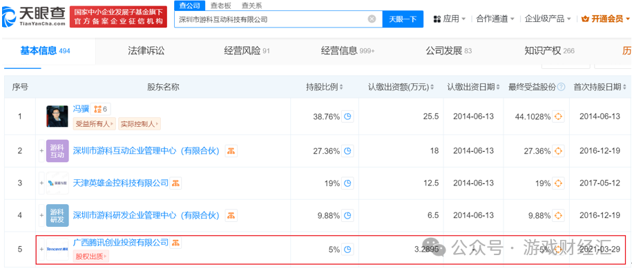 天眼查数据显示,腾讯控股通过广西腾讯创业投资有限公司直接持有《黑神话:悟空》开发公司游戏科学5%的股份。