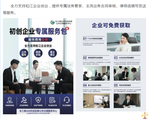 在服务月内,面向松江企业推出“初创企业专属法律服务包”“企业法律服务减时券”及“企业法律诊断服务”,以惠企“三连”的形式,为企业提供若干均等普惠的法律服务清单及产品,供需求企业选取。