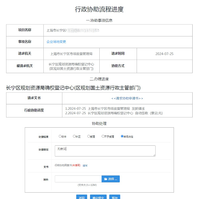 如今,窗口工作人员通过上海市行政协助平台即可发起企业场地变更的行政协助请求,实现跨部门线上流转不动产登记簿信息,有效避免企业在两个部门间往返,做到“数据多跑路,企业少跑腿”。此外,行政协助在提高数据使用效率的同时,还有利于甄别材料的真实性,打通工作堵点,形成有效闭环。