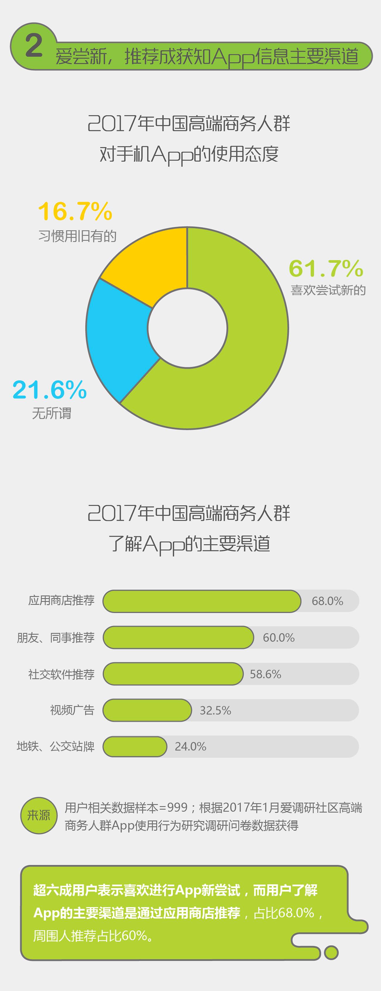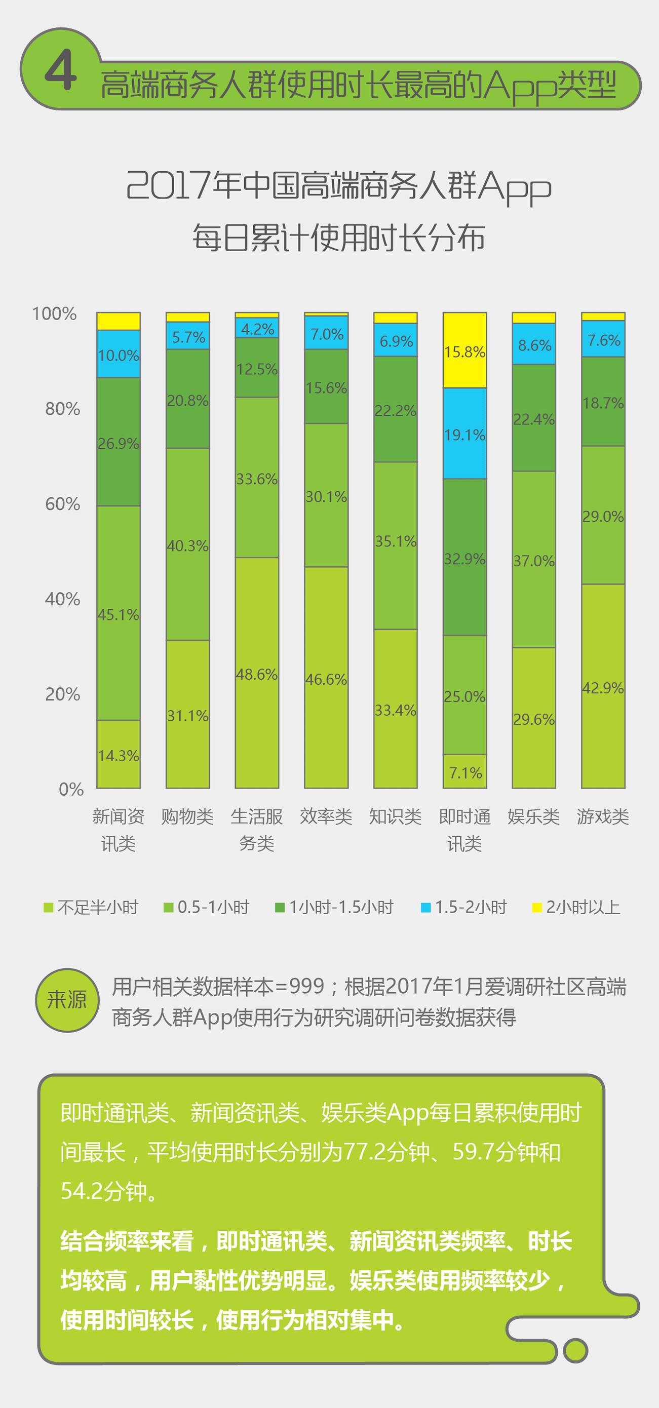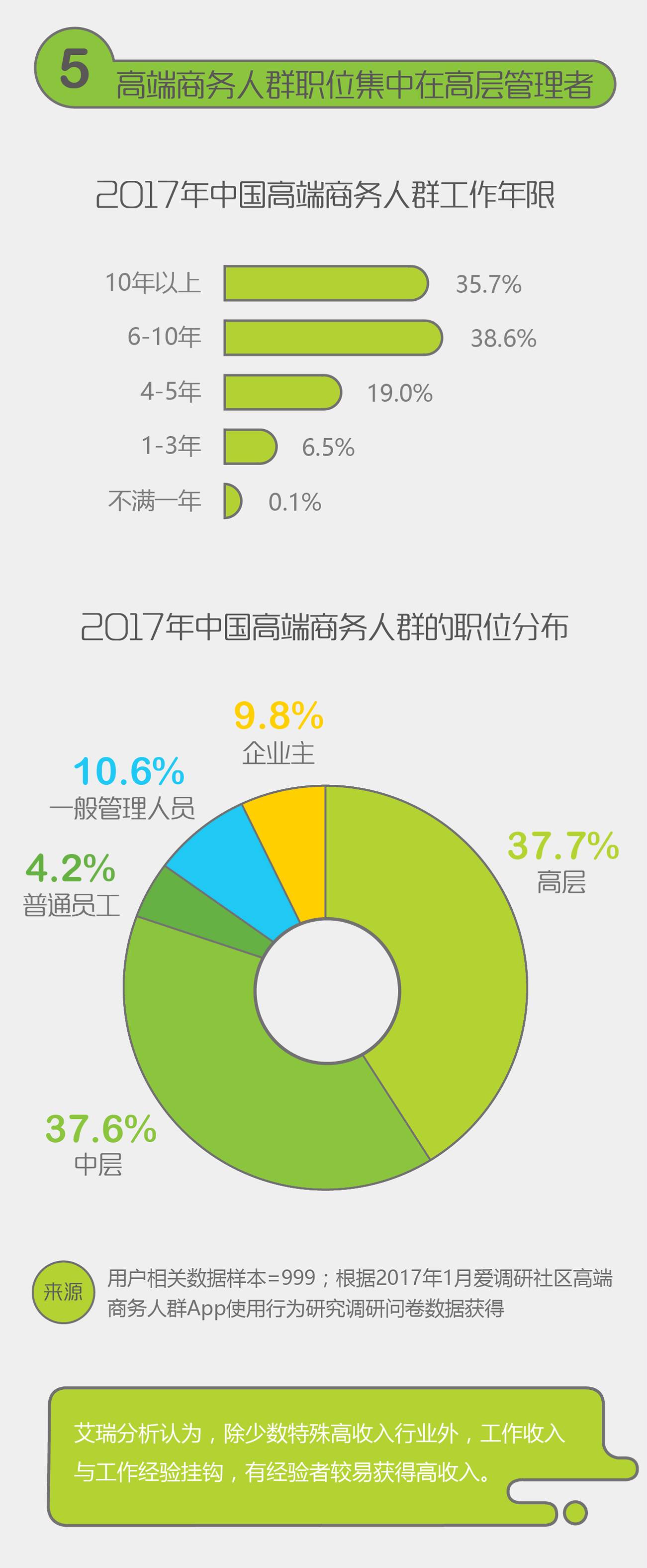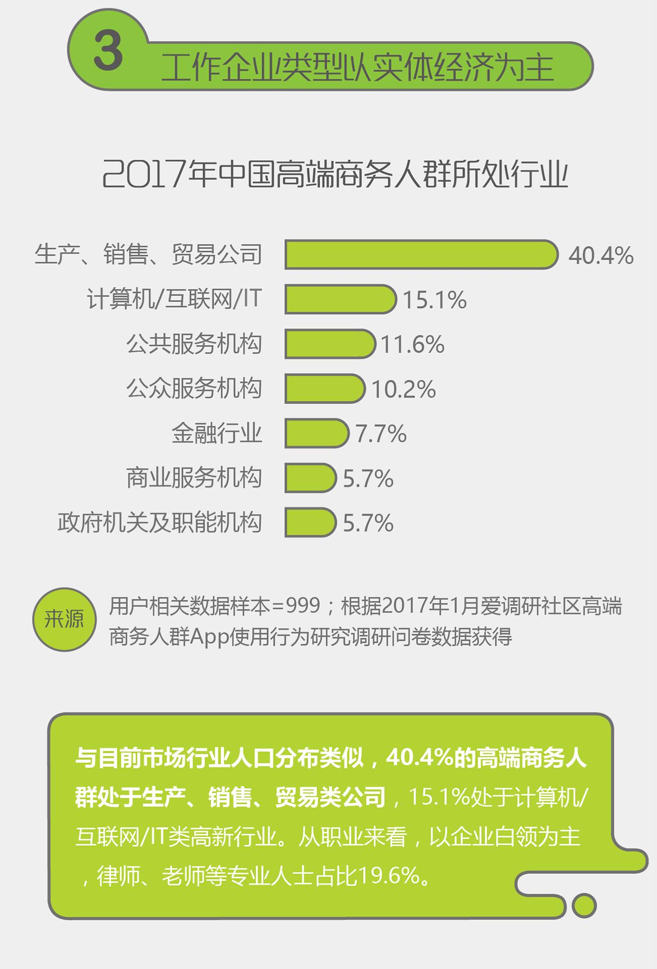 艾瑞咨询于近日发布了《2017年中国高端商务人群App使用习惯盘点白皮书》,小编从53页PPT中整理出有关高端商务人群的16个特征,并以长图的形式展示给大家,帮助大家深度理解高端商务人群这一群体。