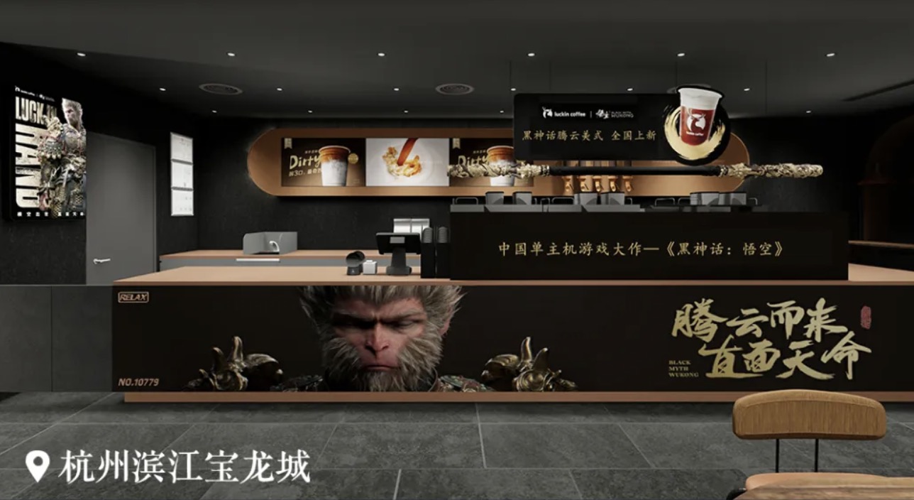 8月20日是这款游戏上线的第一天,而瑞幸在这天之前推出联名活动无疑将热度炒到了最高。除了联名产品,瑞幸咖啡还在部分实体店进行了门店联名装修,氛围感拉满。