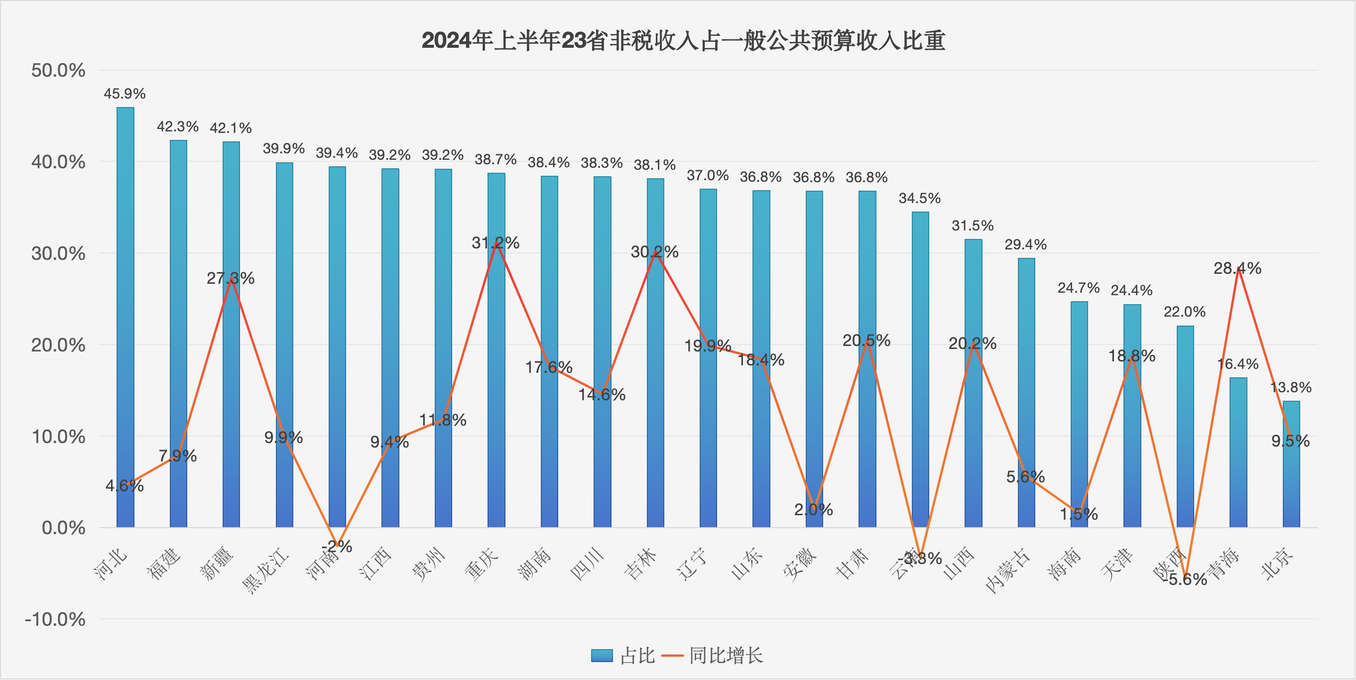 “上半年非税收入占比较高的情况主要集中在中西部和东北地区的省份。这可能与这些地区资产资源丰富、国有资产有偿使用收入较高有关。”闫彦明说。