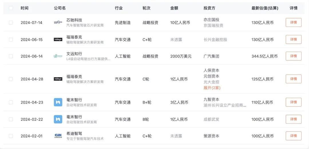 市值超过百亿,且今年有融资动态的智驾企业 数据来源:IT桔子