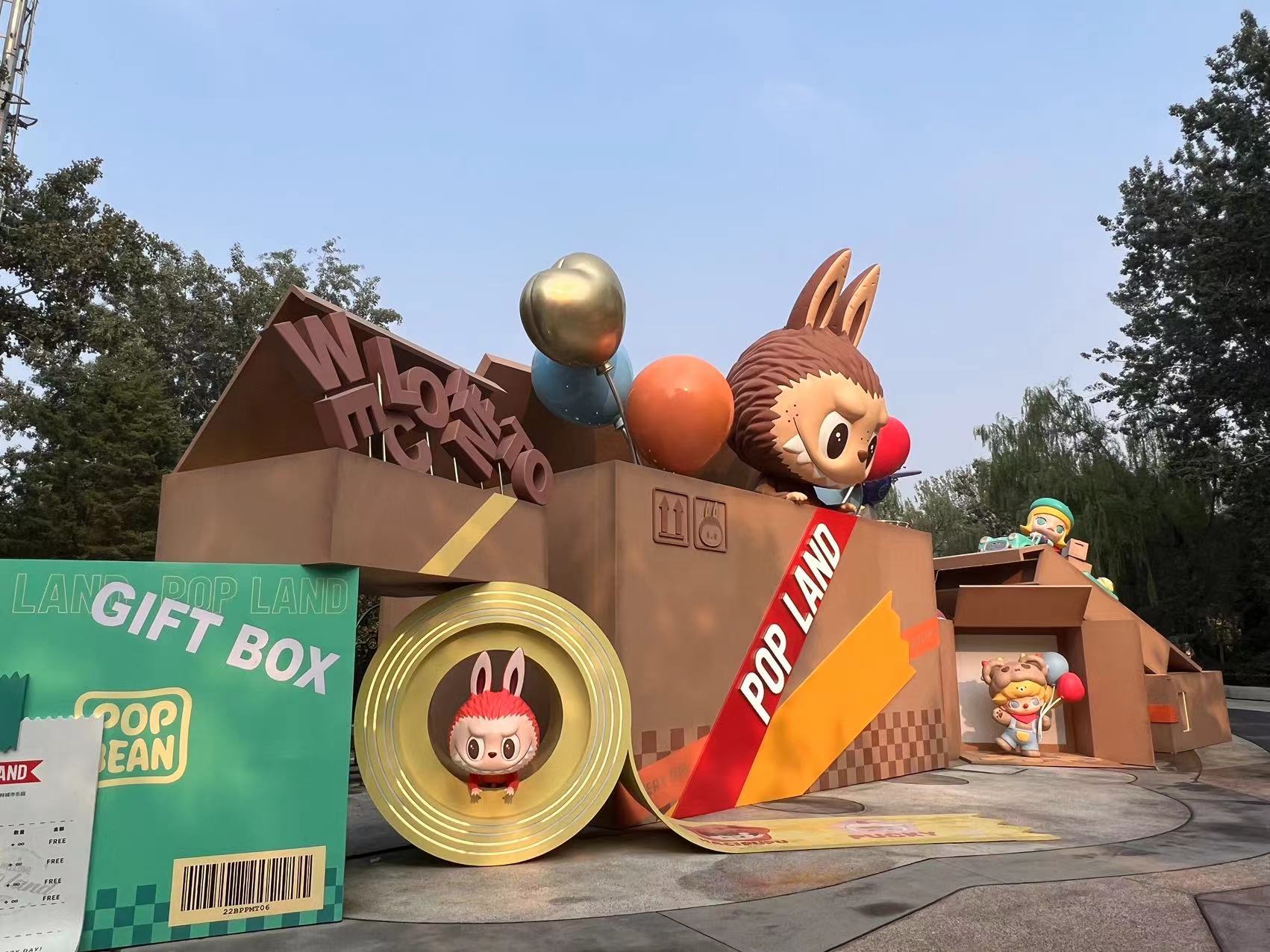 LABUBU人气的高涨,很大程度上也和泡泡玛特在去年开业的乐园有关。在位于北京朝阳公园的这座乐园中,随处可见的艺术装置和游乐设施形象就是LABUBU,而LABUBU在乐园中的人偶表演也在社交网络上广泛传播,进一步提升了这个IP的人气。