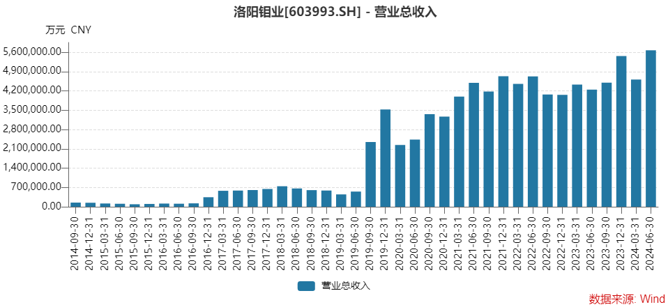 尽管洛阳钼业近期股价有所回调,2024年以来股价累积涨幅仍超过40%,大幅跑赢大盘。最新市值约1,600亿元。
