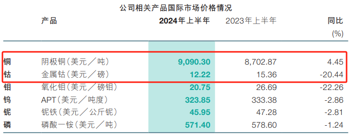 钴价的波动对洛阳钼业的影响也并不小,但上半年因产量增幅较大弥补了价格下滑。