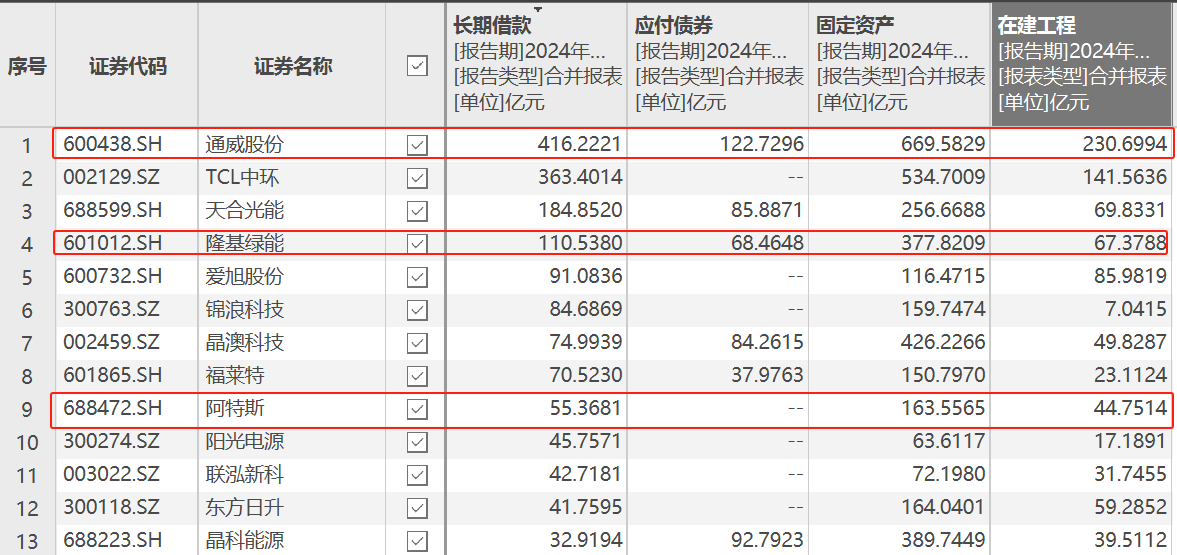 通威股份在建工程高达231亿元,是隆基绿能的3.4倍,是阿特斯的5倍。