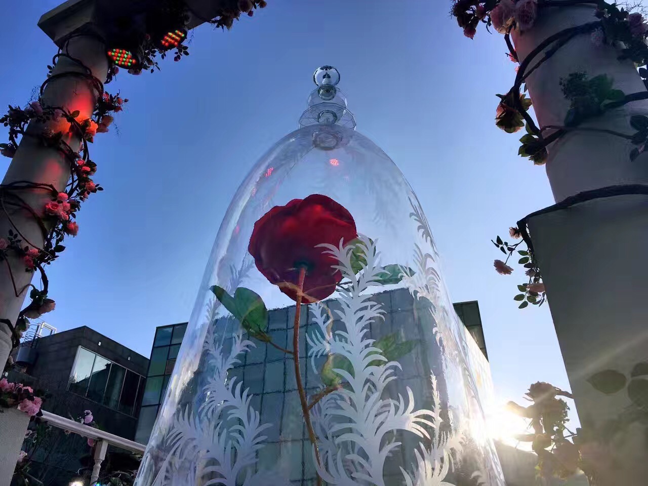 这个颇有视觉吸引力的景观,是迪士尼影业为即将上映的《美女与野兽》而专门布置的特展。为了让你感受到更多浪漫气氛,这部爱情电影特意选择今年情人节和白色情人节这个时间段,以“To keep love(守护爱)”为主题,在北京、上海、成都和广州同步展出。