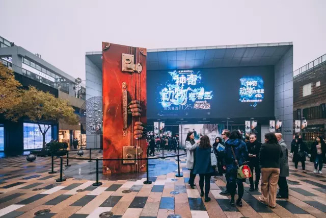 电影主题展,选址往往是电影宣发方考虑的最重要的因素。而在北京,三里屯正在逐渐成为一个受欢迎的选择。去年11月,广场上出现了大箱子和神奇生物,以及橙色大厅内精心布置的《神奇动物在哪里》互动展览。电影《魔兽》把这里作为全球巡展的第三站,用真人比例的巨大模型、电影道具、服饰和武器吸引了十多万慕名而来的粉丝,两层楼高的暴风城王座和兽人帐篷成了潮人在这里自拍的绝佳背景。三里屯太古里和迪士尼的合作也不止一次,《美国队长2》上映期间,高达5米的巨型美国队长盾牌、神盾局天空母舰造型的展示柜、主角穿过的原版戏服、1:1的美国队长雕像也被搬了过来。