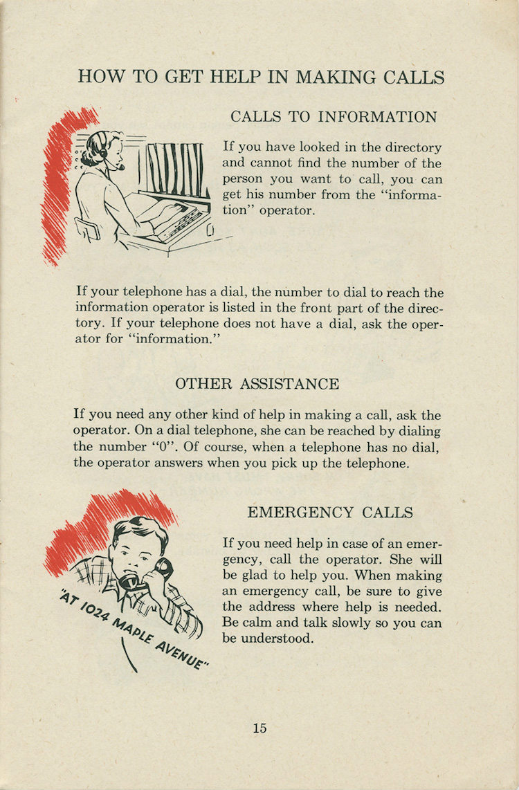 下拉阅读小册子,它大概会唤起你的怀旧情怀,或者让你感觉到以前的电话礼仪竟然这么复杂。