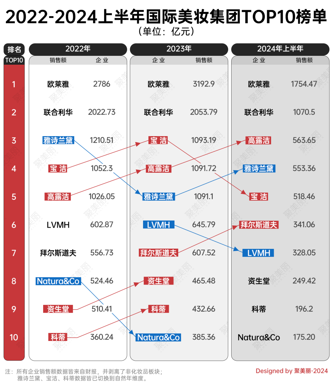 不过,虽然近期国际美妆集团似有风雨飘摇之势,TOP10名单还是依然稳固的。