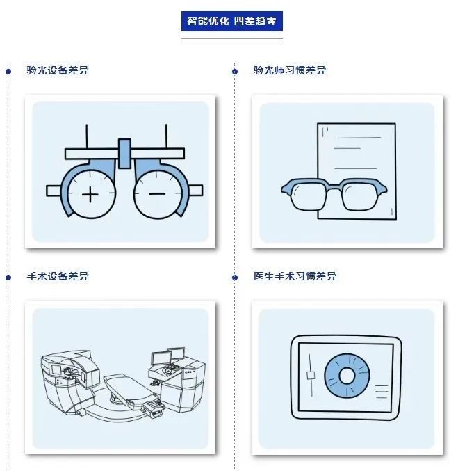 微创全飞秒精准4.0通过消除验光设备差异、验光技术差异、手术设备差异、医生习惯差异,显著降低了手术过程中的差异,智能优化,四差趋零!这种全面的误差控制使得可以精确到小数点后三位,大大提高了手术结果的准确性和稳定性。