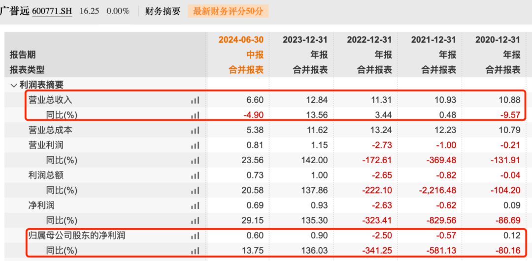 2024年上半年,广誉远实现营业收入6.60亿元,同比下滑4.9%;归母净利润为5960.31万元,同比增长13.75%。营业收入减少的同时,归母净利润却在增长。
