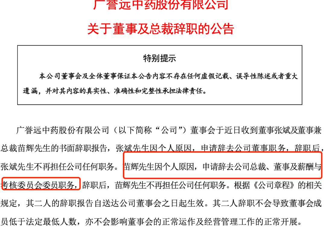 早在2022年7月,苗辉离开振东制药加入广誉远,担任公司副总裁一职,后又升任为总裁。2024年4月9日,苗辉申请辞去了公司总裁、董事及薪酬与考核委员会委员的职务,辞职后不再担任公司任何职务。