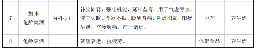 广誉远的养生酒主要有两大品类,分别是加味龟龄集酒和龟龄集酒,这两类酒分别具备不同的养生功效。