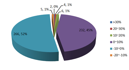 2月管理期货型策略产品收益率差异收窄,首尾相差44.58%。在列入统计的515只私募产品中,有245只产品取得正收益,占比不到五成;亏损在10%以内的产品有266只,超过全部管理期货型策略产品半数以上。东华期货旗下的“东华期货主动平衡1号”,“东华期货金石1号” 分获2月管理期货产品冠亚军。