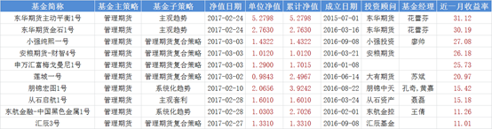 在前十名榜单中,“东华期货主动平衡1号”,“东华期货金石1号”,2月分别录得31.12%,30.19%的收益。这两只为东华期货旗下的两只主观趋势策略的期货管理型产品,分别成立于2015年7月,2016年3月,最新净值为5.2798,2.763。净值曲线来看,两只产品波动率趋同一致,策略上应该是采取同一策略。