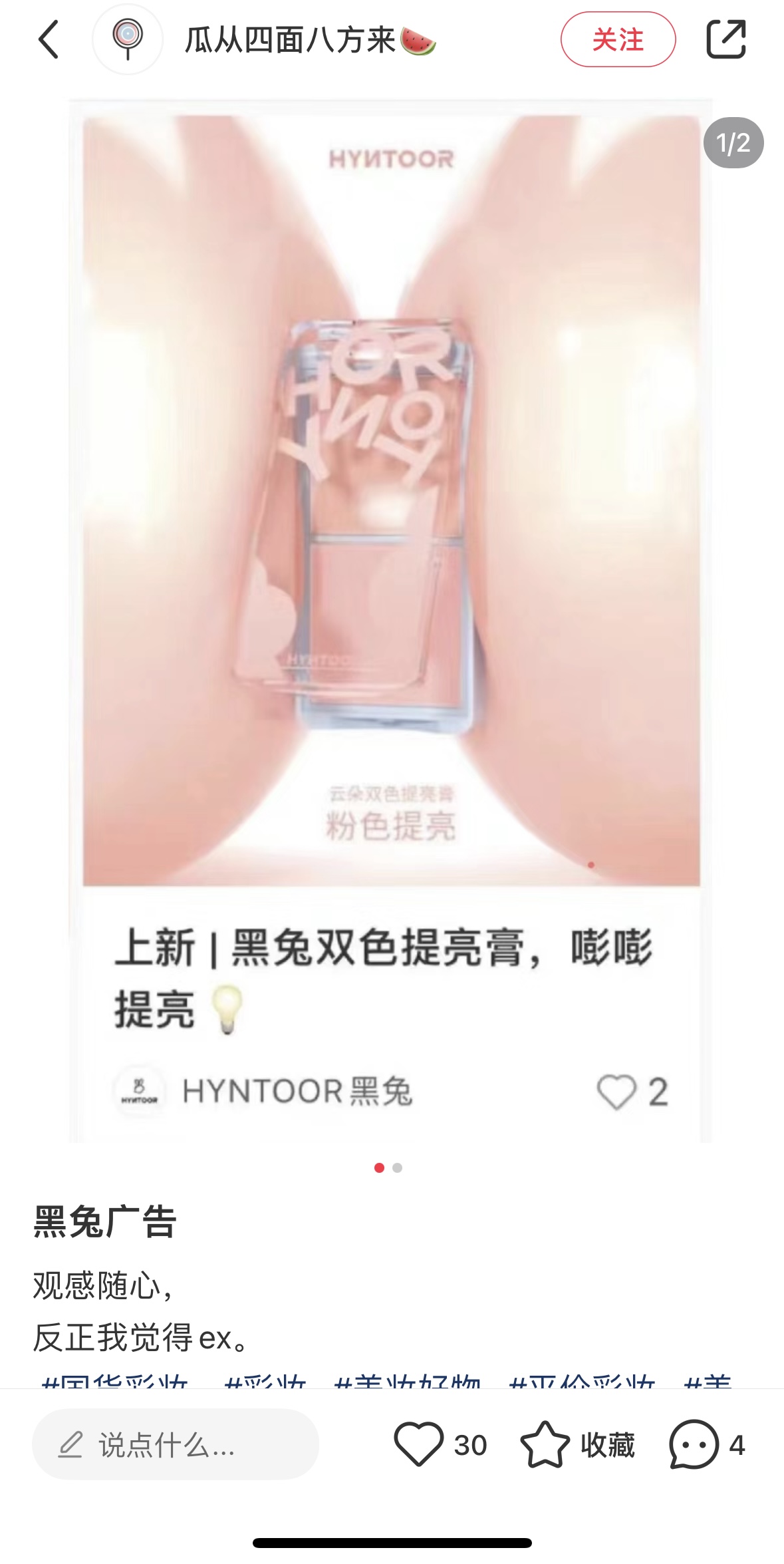 多位网友在社交媒体上发文称,花洛莉亚和黑兔两个品牌的新品宣传和产品包装有擦边的嫌疑。其中,花洛莉亚8月中旬上新的“小蝴蝶结”系列成膜唇蜜被指爱心刷头的造型形似男性生殖器,黑兔的一款双色提亮膏的广告图也被指有性暗示的嫌疑。此外,还有网友表示,该品牌2021年推出的亲亲泥系列唇釉的产品名也令人感到不适。