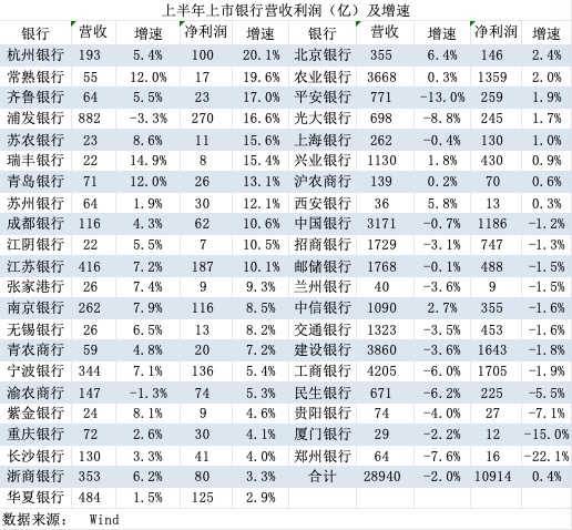 财报数据显示,上半年平安银行营收下降13%,而净利润增长1.9%,投资收益则增长68%,信用减值损失下降28.4%。和平安银行类似,通过拨备反哺,上半年30家上市银行净利润增速要高于营收增速,其中一部分“扭亏为盈”。