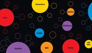 在某种意义上,专家说,数据就是司机的位置。企业都会对那些大型咨询公司通过几十年收集到的深度客户资料非常渴望。与此同时,埃森哲和德勤都希望他们的数据能够创造新的收入流。这些数据在品牌中相互交叉流动,寻求生产活动、事件和接触点,促进与客户的一对一关系,快速高效地销售产品,并让客户能够回头购买更多。