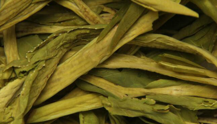 |西湖龙井:干茶外形扁平光滑、挺秀尖削,形似碗钉