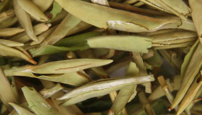 |白牡丹:色泽灰绿,形似娇小的柳树叶