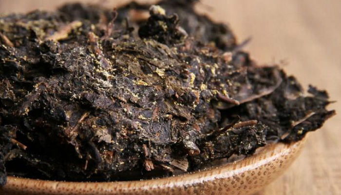 安化茯砖出自湖南安化,因在伏天加工,故称之为“伏茶”,多呈砖块形,也有散茶,色泽黑褐,较润,压制松紧适度,便于发花,砖内金花饱满,干茶香气纯正,有陈香和菌花香。