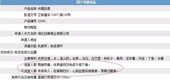 另外,经常喝保健酒的人会发现,许多保健酒都是只标成分,不标具体含量——许多功效成分用少了没作用,用多了则伤身——而消费者往往只能蒙在鼓里。