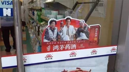 而大大小小的鸿茅药酒广告,则是许多药店的标配。