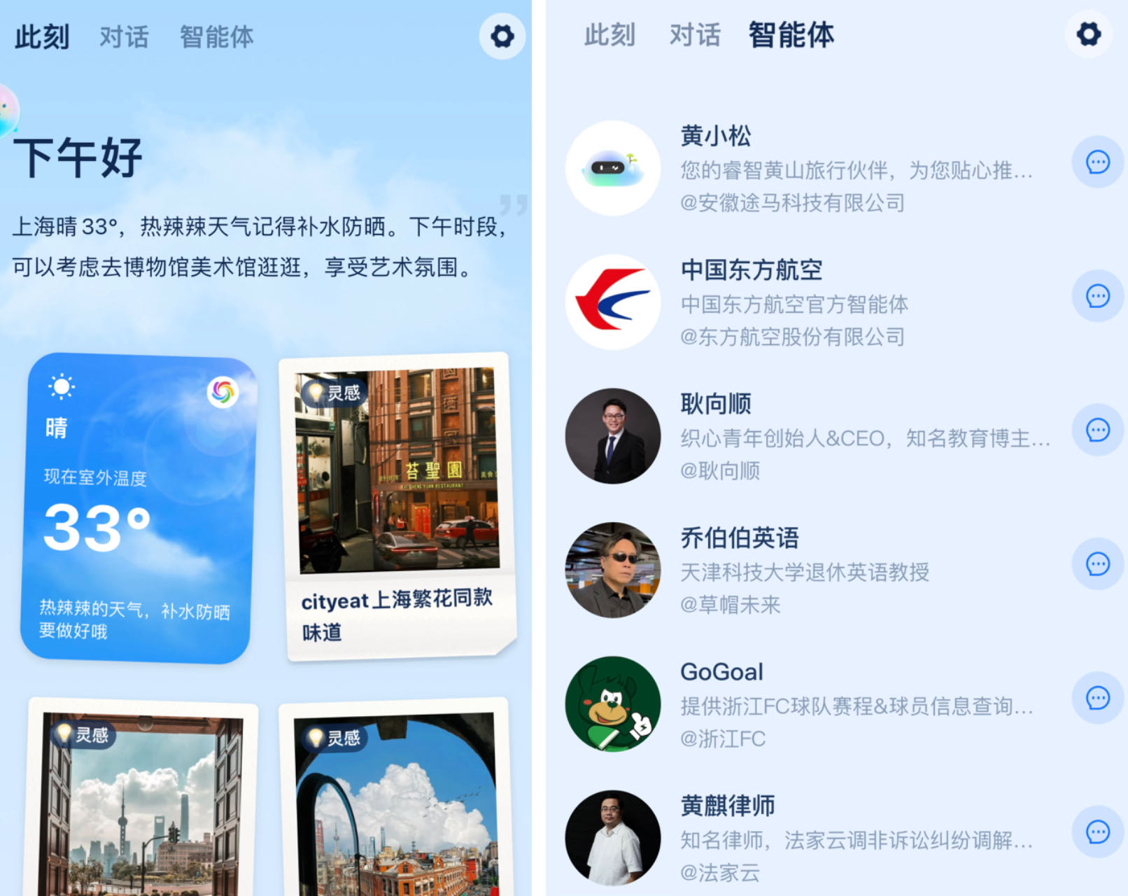 支小宝App的定位是服务型AI产品,基于蚂蚁百灵大模型开发。它连接的仍是支付宝生态,在功能上,通过对话进行订票、点餐、打车等。目前,“支小宝”的首页界面包含了“此刻”、“对话”和“智能体”三个功能。其中,“此刻”属于专属服务推荐,“对话”是生活相关的问答和服务AI,“智能体”则是让AI解答更专业的问题。