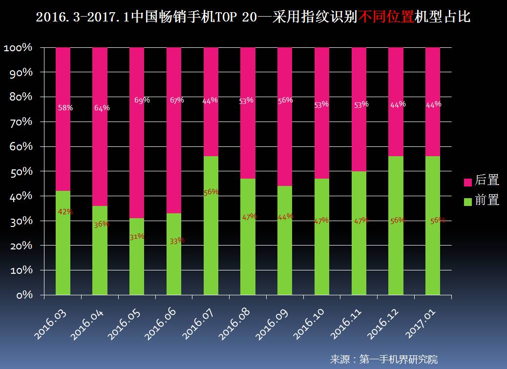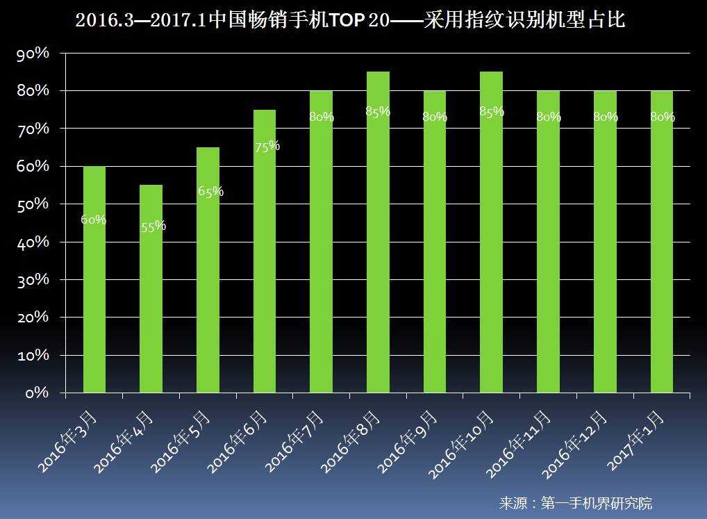 中国畅销手机TOP20中采用前置指纹识别的机型数量连续2个月超过50%。第一手机界研究院认为,2017年售价2000元以上的机型将全面采用前置指纹识别。这将给专注蓝宝石领域的富源科技厂家和陶瓷盖板领域的潮州三环带来利好。
